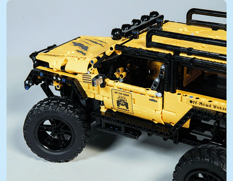 ONEBOT Buggy Explorer представляет собой точную имитацию настоящего внедорожника. Он оснащен трансмиссионными валами для передачи кинетической энергии и отличной проходимости в сложных дорожных условиях.