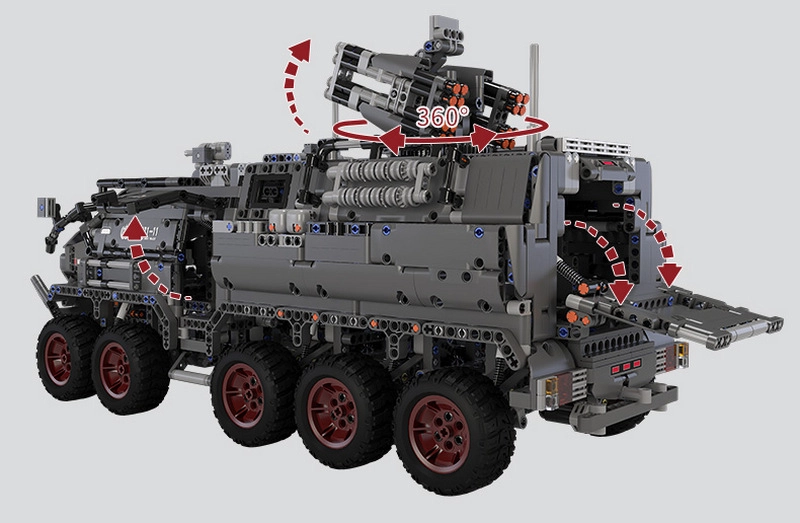 Помимо процесса сборки конструктора бронетранспортер интересен и как функциональная игрушка. У него вращается пулемет вокруг своей оси, открываются двери, предусмотрена коробка передач, а колеса получили систему независимой амортизации.