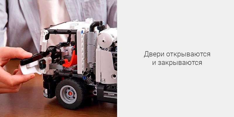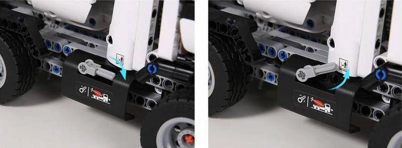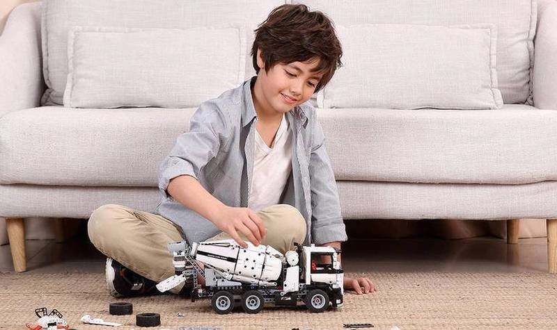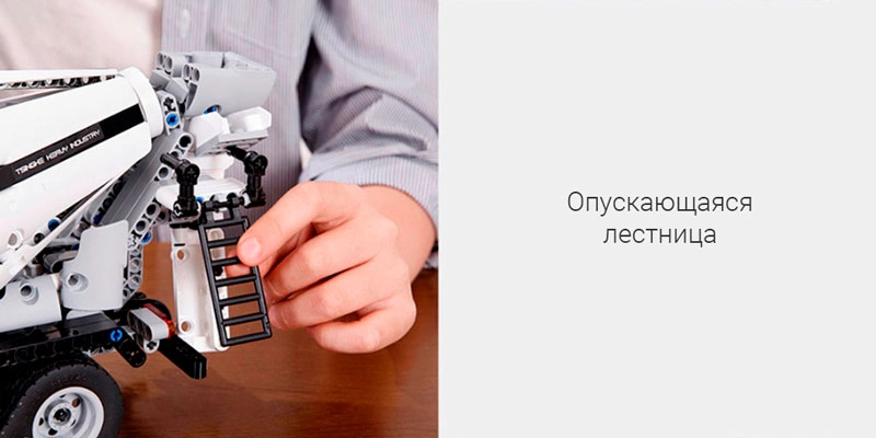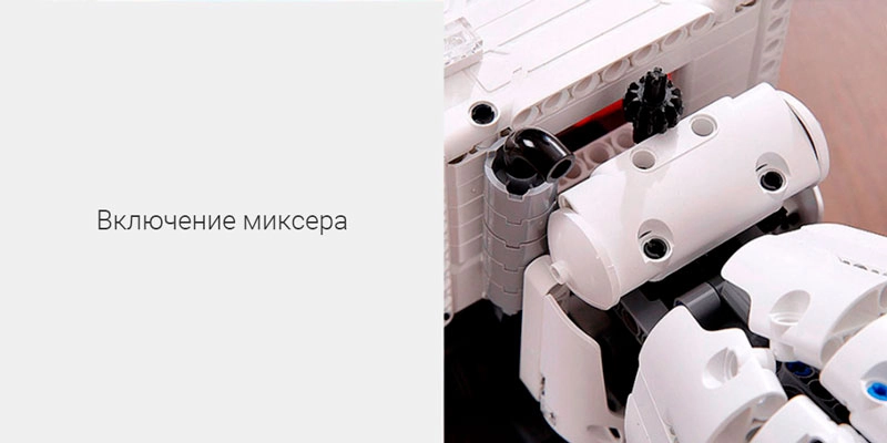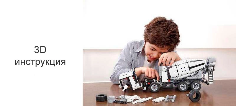 С помощью объемной 3D-инструкции ребенок сможет самостоятельно собрать бетономешалку из 959 деталей.
