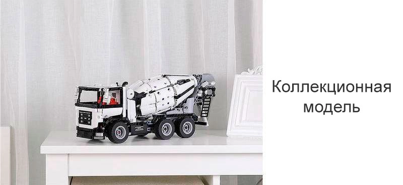 Собранное изделие копирует настоящий автомобиль-бетономешалку в масштабе 1:16. Он украсит вашу коллекцию моделей.