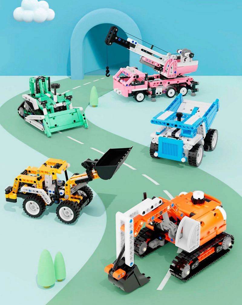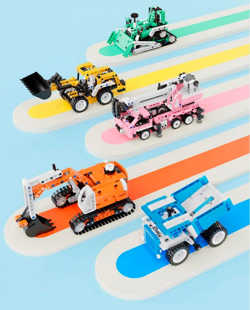 В коллекцию ONEBOT входят автокран, экскаватор, самосвал, минипогрузчик и бульдозер.