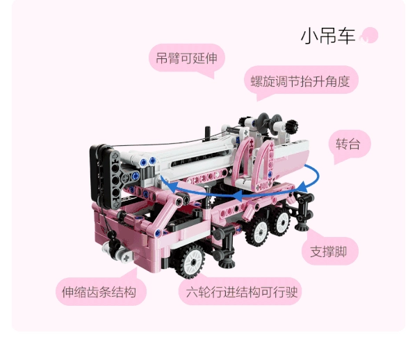 Конструктор Onebot Mini Crane Pink (OBQXKK95AIQI) — игрушечный мини-автокран состоящий из 255 деталей. Развивает мелкую моторику, логику и помогает творческому развитию ребенка.