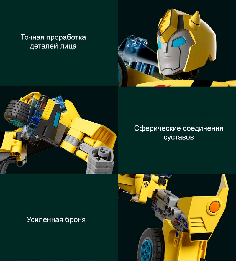 Конструктор ONEBOT Transformers BumbleBee OBDHF02HZB — развивающий конструктор для детей старше 10 лет. Свыше 1400 деталей из прочного безопасного пластика собираются в робота-трансформера, который складывается в автомобиль.
