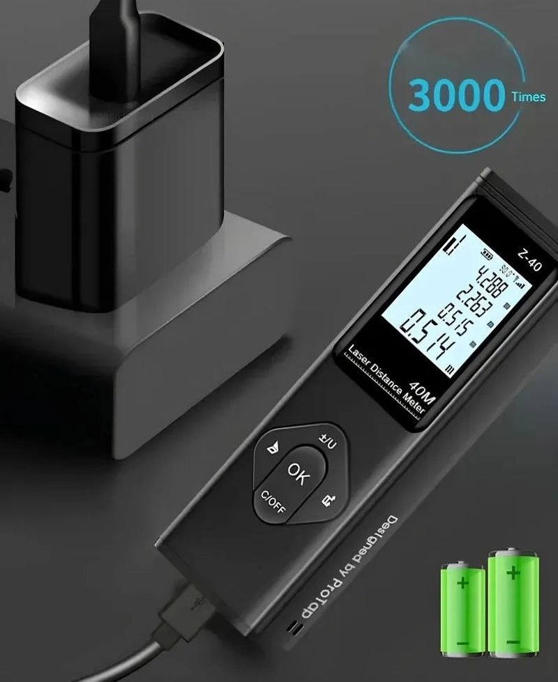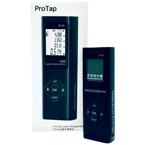 Лазерный дальномер ProTap Laser Range Finder Z40 — предназначен для измерений на расстоянии от 5 см до 40 метров. Работает от перезаряжаемого аккумулятора, оснащен ярким информативным дисплеем и удобными физическими кнопками управления.