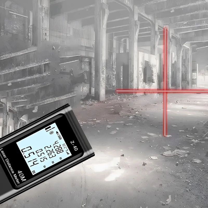 С помощью ProTap Laser Range Finder Z40 можно измерять площадь и объем, угол наклона, измерение высоты через теорему Пифагора, сравнивать отрезки и делать последовательно несколько замеров.