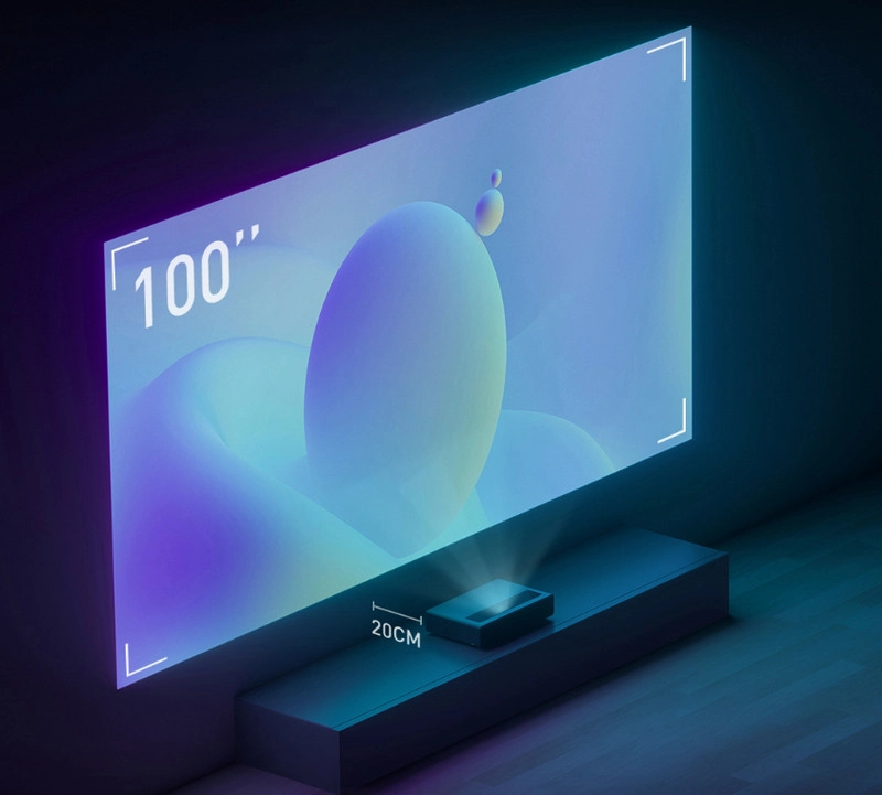 Вы можете установить проектор на расстоянии 20 см от стены и наслаждаться изображением с диагональю 100". Объективу с ультракоротким фокусом и глубиной резкости 0,23:1 требуется минимальное расстояние для создания огромной проекции. Оптимальный размер проекции для Xiaomi Mijia Laser Cinema 2 от 80 до 150 дюймов, но проектор поддерживает и диагонали от 40 до 200 дюймов.