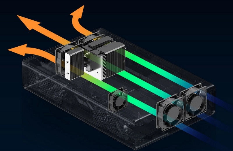 Проектор охлаждается с помощью вентиляторов с интеллектуальной регулировкой. Продуманная система отведения тепла работает не только эффективно, но и тихо — уровень шума работающего проектора не превышает 30 дБ.