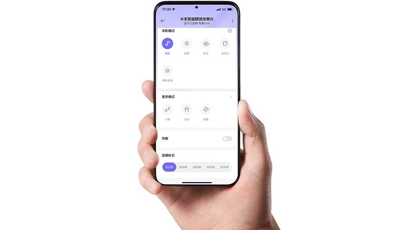 Массажер имеет 10 предустановленных режимов от режима горячего компресса до активной разминки, также можно создать собственные 3 режима.