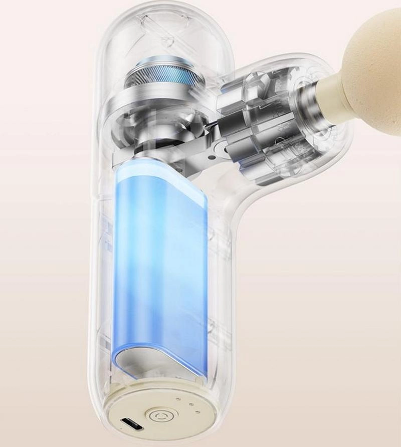 Громкость массажера во время работы не превышает 40 дБ. Бесщеточный мотор и корпус с системой шумоподавления позволяют работать с массажером в любой обстановке.
