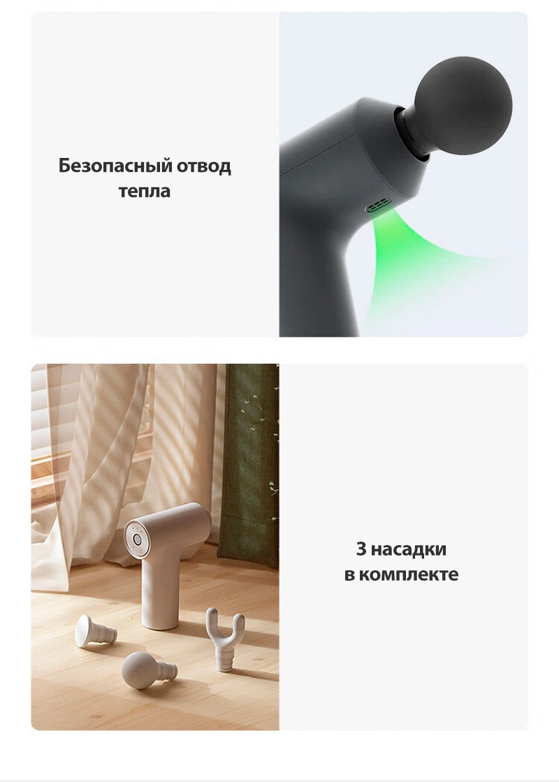 Используйте статичное давление для глубокого проминания мышц или режим с растирающими движениями для разогрева. Массажер работает с тремя режимами скорости.