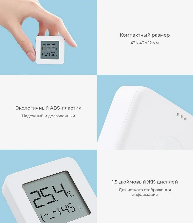 Измеряет влажность и температуру, передает данные на смартфон и устройства умного дома.