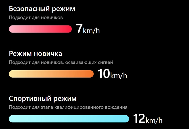 Segway-Ninebot L6 поддерживает три режима скорости — 7 км/ч, 10 км/ч или 12 км/ч.