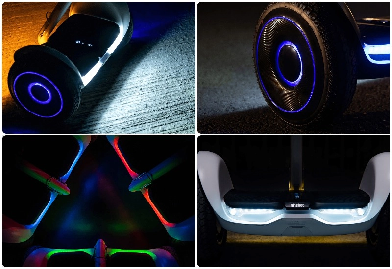 Segway-Ninebot L6 светится со всех сторон помещая вас в центр внимания и обеспечивая безопасность во время движения в темное время суток.