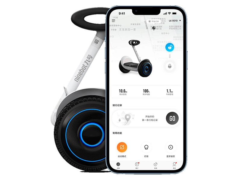 Фирменное приложение позволяет переключать скоростной режим, управлять подсветкой, контролировать пробег и состояние транспортного средства, а также обновлять прошивку сигвея.
