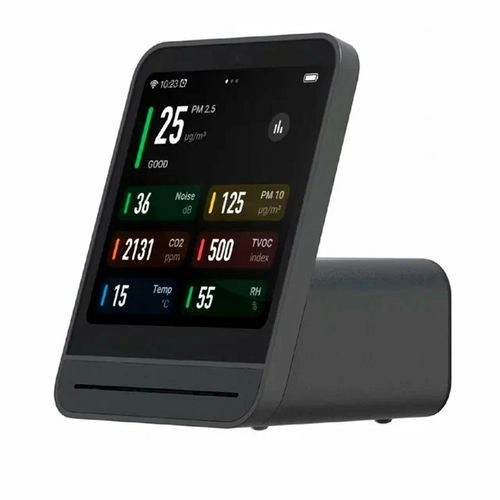Монитор качества воздуха Qingping Air Monitor 2 (CGS2) — измеряет семь показателей качества воздуха, имеет быстросменный датчик PM и 4-дюймовый сенсорный цветной экран. Подключается к домашней сети через Wi-Fi и передает все данные в приложение Mi Home или Qingping.