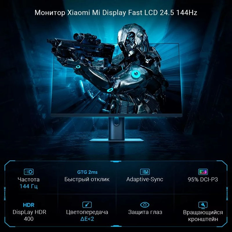 Монитор Xiaomi Display 24,5" 144Hz (XMMNT245HF) — игровой монитор с частотой обновления экрана 144 Гц, технологией быстрого отклика 2 мс и поддержкой Adaptive Sync. Режим пониженного излучения синего света для комфортной работы в течение длительного времени.