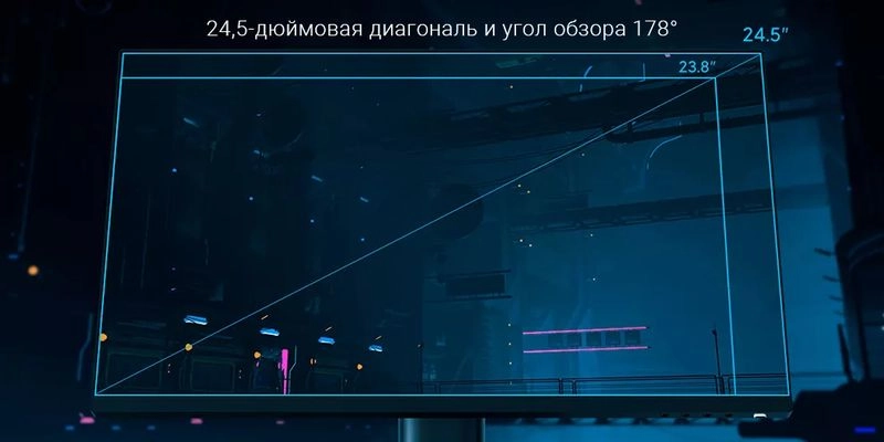 Увеличенная диагональ размером 24,5" открывает еще больше возможностей для комфортной работы и просмотра видео. Угол обзора 178° для четкого изображения со всех сторон.