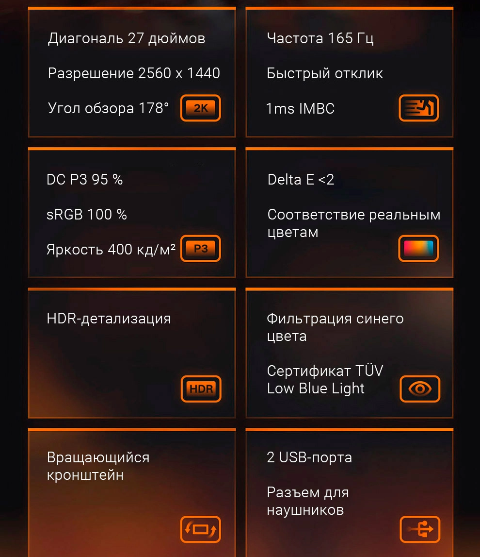| Разрешение экрана | 2560x1440@165 Гц | |