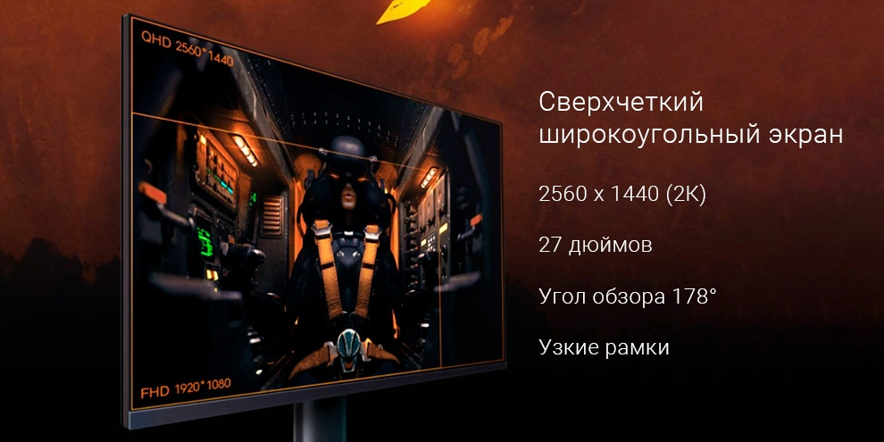 Монитор Xiaomi Gaming Display 27" 165 Hz (XMMNT27HQ) ─ обладает сверхчетким широкоугольным экраном с разрешением 2560 х 1440 и диагональю 27 дюймов. Благодаря большой цветовой гамме изображение передается с высокой точностью, а HDR значительно улучшает детализацию темных и светлых участков картинки.