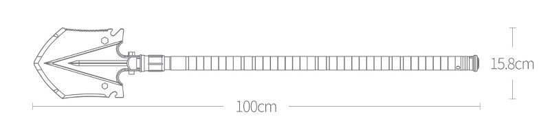 | Комплектация | Лопата, компас, свисток, аварийный молоток, шестигранный ключ, шлицевая отвертка, крестовая отвертка (филипс), инструмент для обрезания веревки, огниво, открывалка, пила | |