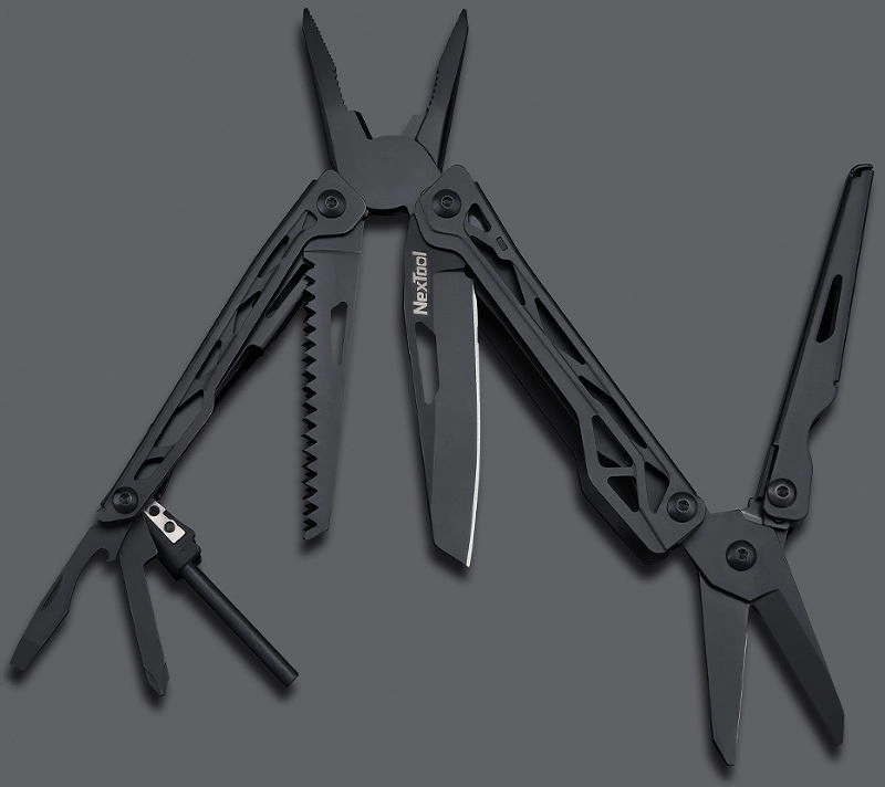 Мультитул NexTool Nato Multifunction Knife NE0123 представляет собой интеграцию из 10 аксессуаров, собранных в 1 комплекте. Мультитул представляют собой комбинацию таких инструментов, как ножницы, плоскогубцы, нож, пила по дереву, отвертка, магниевый стержень и другие инструменты, компактно собранные в одном корпусе.