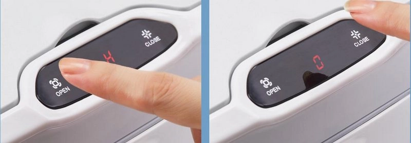 Если вам потребуется пользоваться ведром длительное время, то вы можете заблокировать крышку в открытом состоянии, для этого нажмите сенсорную кнопку Open, для закрытия ведра нажмите на Close.