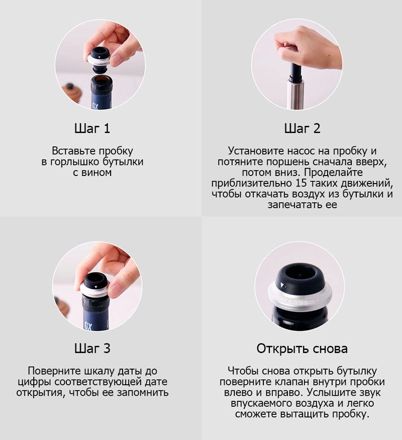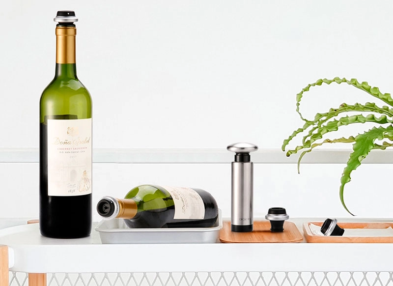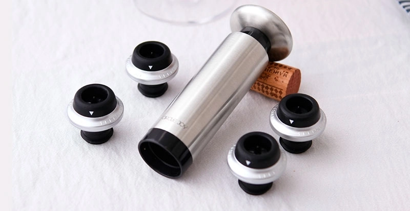 Насос из нержавеющей стали отсасывает воздух из бутылки, создавая вакуум внутри для сохранения вкуса и аромата вина.