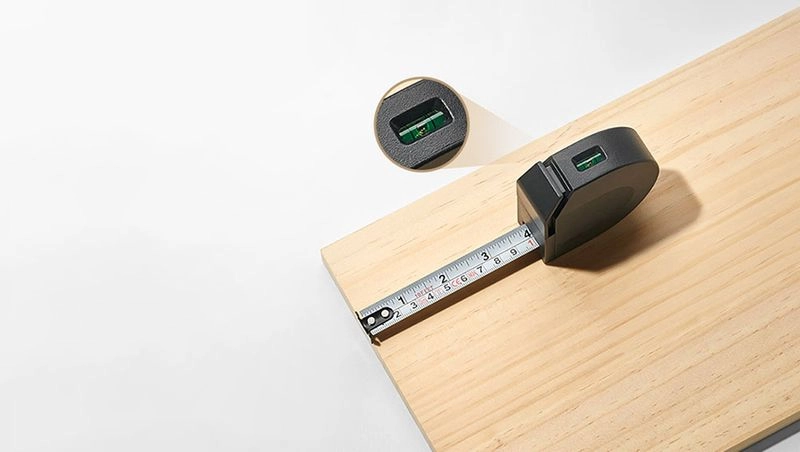 Рулетка длиной 3 метра имеет встроенный в корпус пузырьковый уровень.