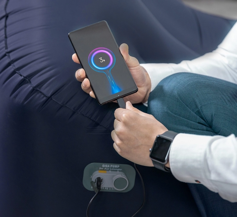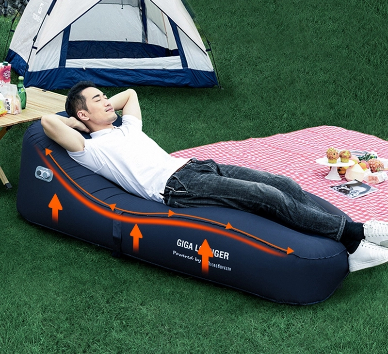 Надувная кровать GIGA Lounger Air Bed CS1 — это портативная кровать, шезлонг и матрас для купания с автоматическим насосом, который надует кровать за 100 секунд.