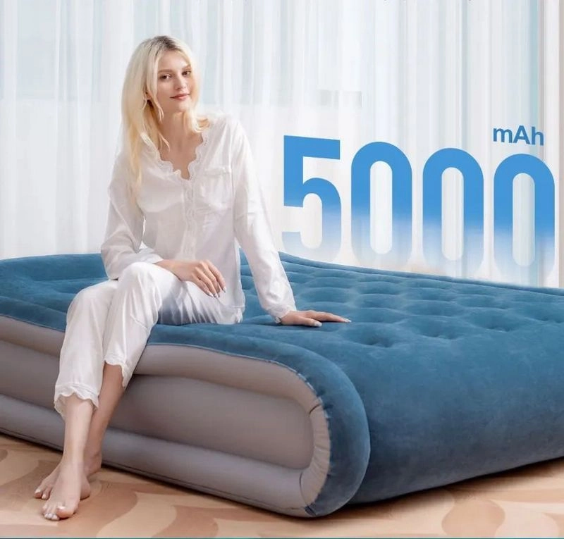 Встроенного аккумулятора емкостью 5000 мАч хватает на 4 накачивания кровати. А потом его можно подзарядить.