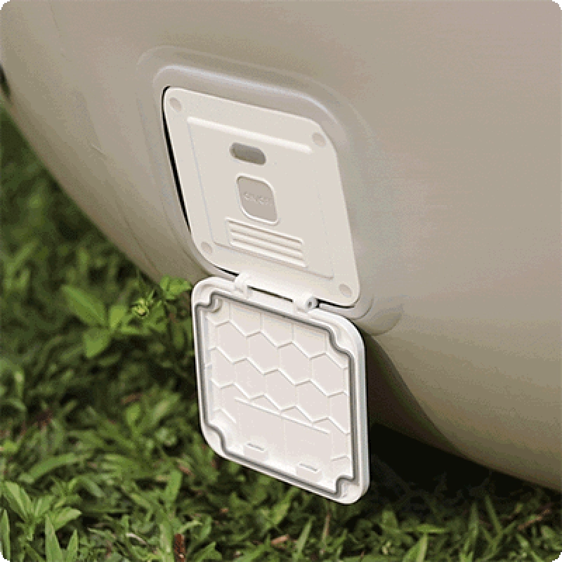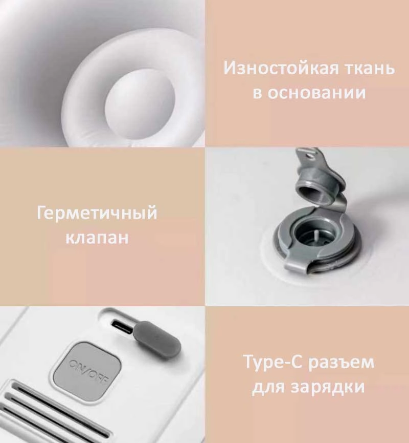 Кресло полностью надувается всего за 3 минуты после однократного нажатия на кнопку. Двигатель насоса вращается со скоростью 4200 оборота в минуту и обеспечивает стабильное давление воздуха. За работу насоса отвечает встроенный аккумулятор емкостью 2000 мАч.