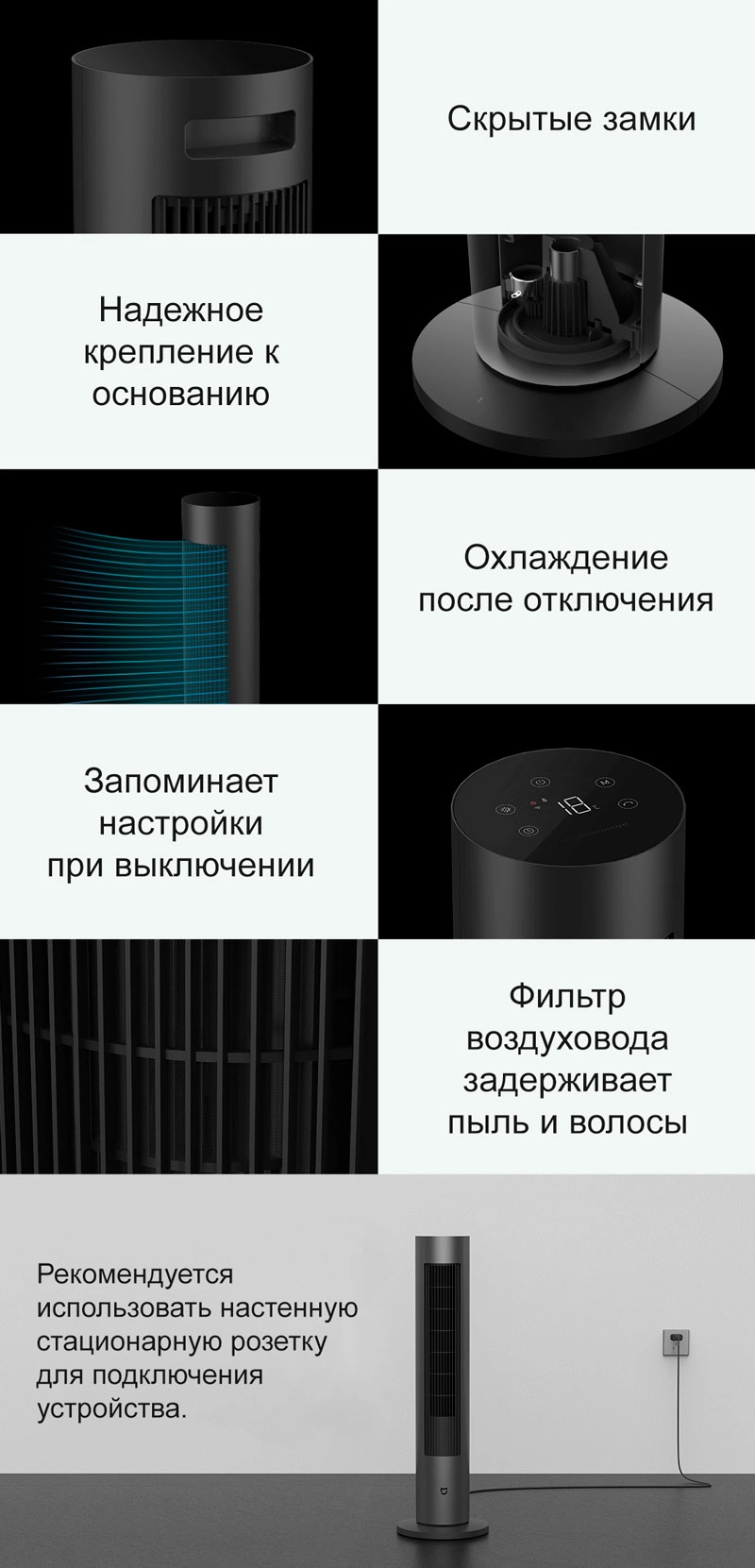 Напольный вентилятор-обогреватель Xiaomi Fan (BPLNS01DM) — одно устройство для зимы и лета. Вентилятор с функцией обогрева может охлаждать вас знойным летом, и согревать холодной зимой. Обогреватель готов к работе за 3 секунды. Надежная система защиты срабатывает во время опрокидывания, отключения питания, перегрева и др.