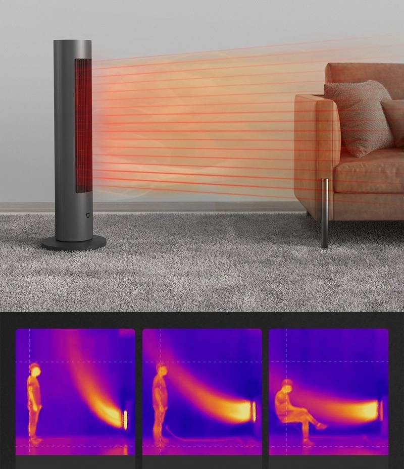 Керамический нагреватель мощностью 2200 Вт нагревается всего за 3 секунды и подает горячий воздух в трех режимах: нагрев, обдув теплым воздухом, режим сна. В приложении Mijia можно выбрать одну из 100 скоростей обдува.