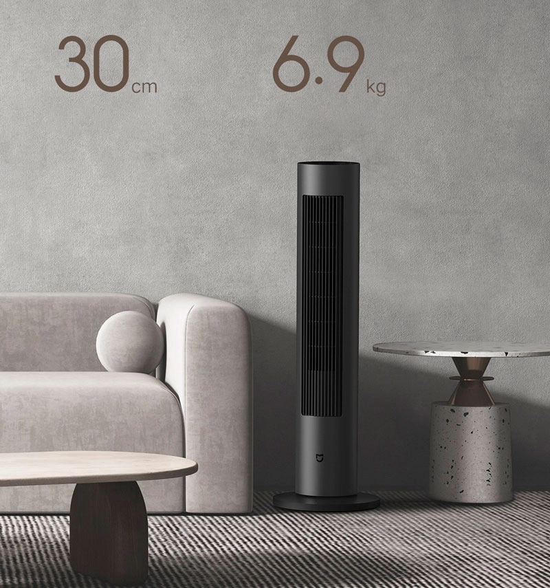Цилиндрическая форма занимает минимум места, а вес менее 7 кг позволяет перемещать Xiaomi Fan по всему дому.