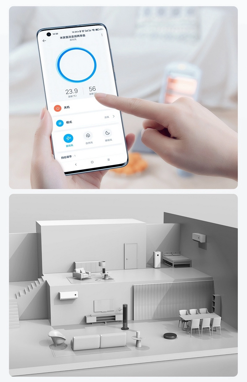 В режиме работы вентилятора пользователям также доступно три режима работы — прямой обдув, имитация естественного ветра, режим сна.