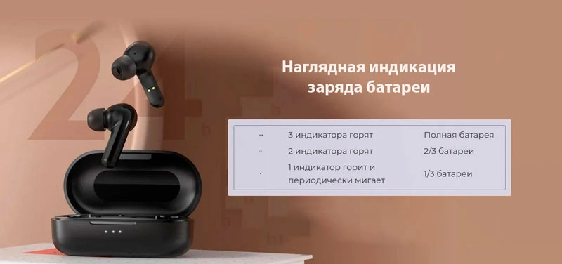 При использовании совместно с кейсом срок работы наушников на одном заряде может достигать 28 часов. За снижением уровня заряда можно наблюдать при помощи индикации на кейсе.