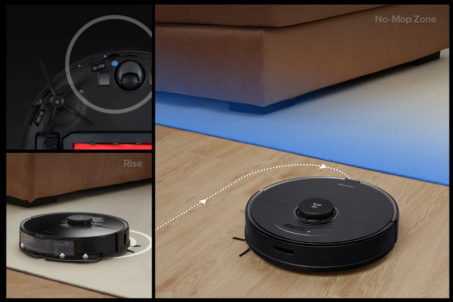 Первое обновление – это опция распознавания ковровых покрытий. Roborock S7 автоматически поднимает швабру, когда заезжает на ковер. Вам больше не нужно выстраивать виртуальные стены для влажной уборки, умный пылесос оставит все ковры сухими.