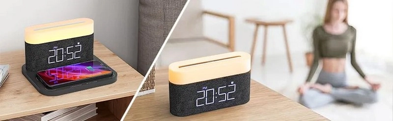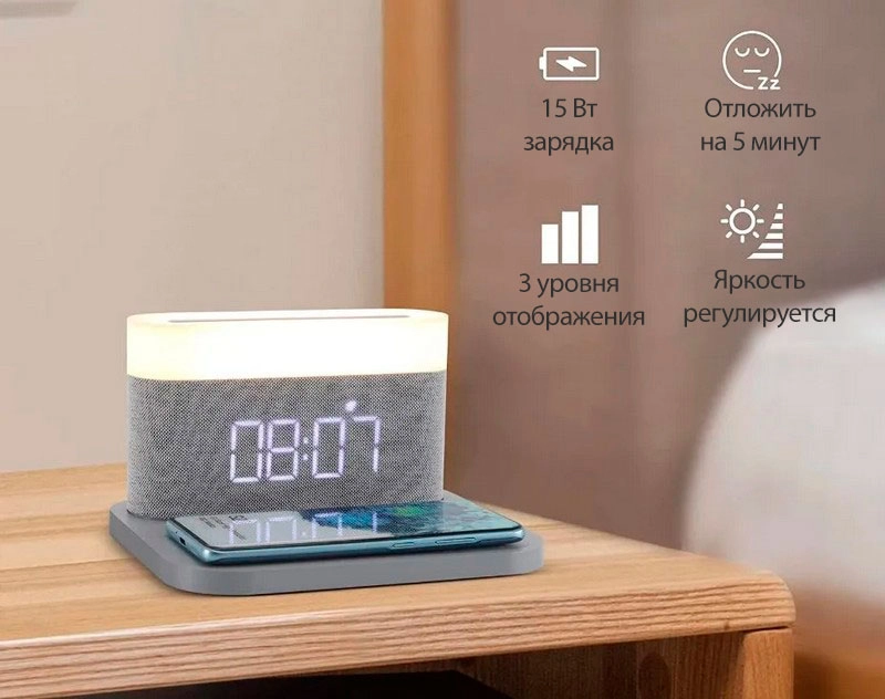 Ночник с беспроводной зарядкой и будильником VFZ Led Lamp Wireless Charger (C-WCLL-C01) — это устройство, которое совмещает в себе функции ночника, будильника, часов и беспроводной зарядки. Встроенный аккумулятор поможет не проспать, если под утро отключат электричество.