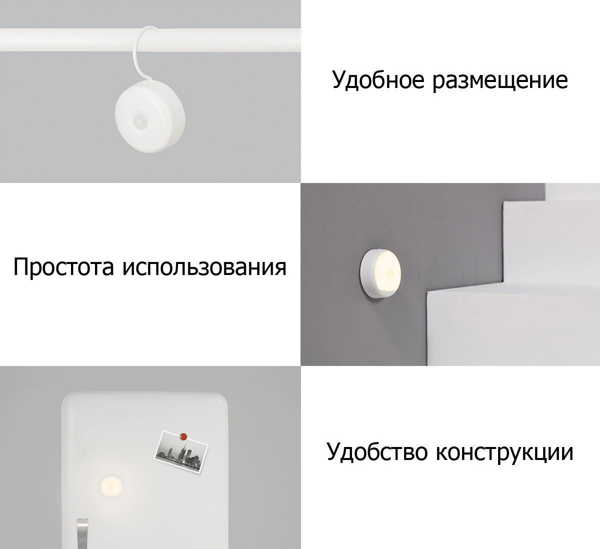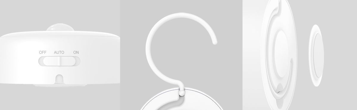 Умный девайс настолько компактный, что вы можете установить его практически в любом удобном для вас месте. Определив место, в которые вы бы хотели разместить светильник, вы можете прикрепить его на двухсторонний скотч, прикрутить саморезами или, используя специальный крюк (находится в упаковке), подвесить его на поручень, ручку, вешалку и т.п.