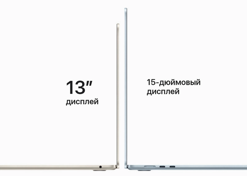 Выбирайте размер под свои нужды: 13-дюймовая модель для максимальной мобильности или 15-дюймовый вариант с увеличенным экраном для продуктивной работы. Оба ноутбука сохраняют фирменную лёгкость MacBook Air.