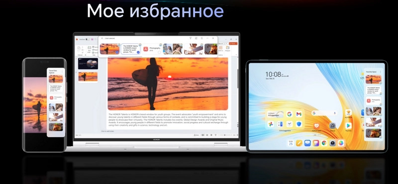 Инструмент «Мое избранное» в HONOR WorkStation облегчает работу с файлами. Перетащите изображение, текст, документ или видео в выделенную область — и контент моментально появится на всех устройствах HONOR. Это удобный способ быстро получать доступ к важным данным независимо от типа устройства.