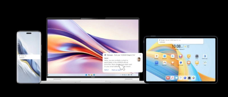 Все уведомления с гаджетов HONOR автоматически отображаются на экране ноутбука, упрощая контроль над сообщениями и снижая отвлечение на другие устройства.