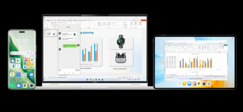 Система HONOR Connect объединяет устройства и облегчает перенос данных. HONOR Device Clone помогает мигрировать с ноутбуков других брендов, а HONOR Share ускоряет обмен файлами.