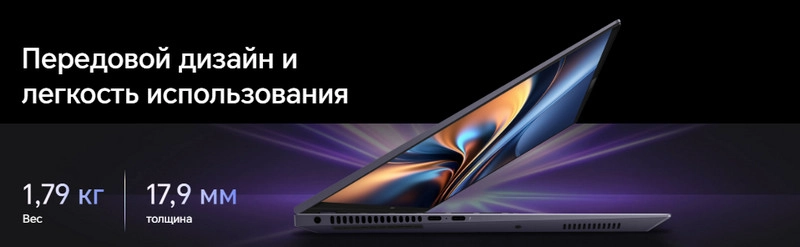Honor MagicBook Pro 16 отличается тонким и легким дизайном: корпус весит 1,79 кг и имеет толщину 17,9 мм. Технология 3D-окраски придает устройству премиальный внешний вид, а компактная форма делает ноутбук удобным спутником для поездок и ежедневной работы.