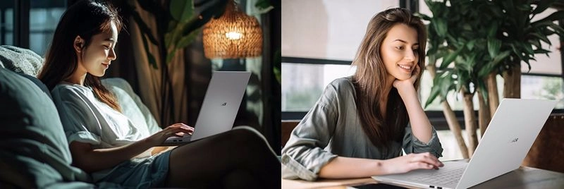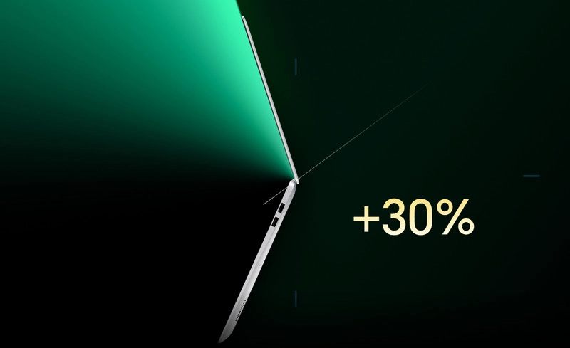 Благодаря сверхтонким рамкам 14,6-дюймовый OLED-дисплей помещён в корпус, сравнимый по размерам с обычными 14-дюймовыми моделями. Разрешение 3,1K и пропорции 3:2 увеличивают полезное рабочее пространство, а частота 120 Гц обеспечивает плавность интерфейса и насыщенность изображения.