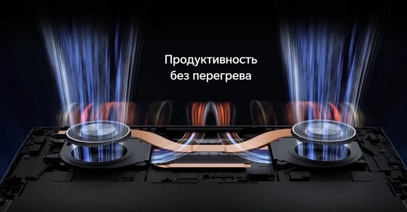 Внутренний обдув, увеличенная тепловая трубка 12 мм и доработанный радиатор обеспечивают эффективный теплоотвод. Вентилятор с улучшенной аэродинамикой поддерживает комфортный уровень шума даже при высокой нагрузке.