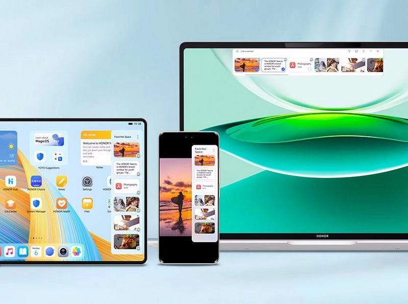 В разделе «Моё избранное» можно быстро сохранять фото, видео, аудио и документы перетаскиванием. Все данные синхронизируются между устройствами HONOR для удобного доступа.