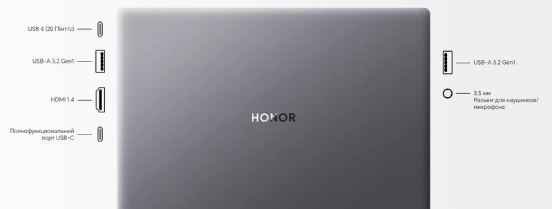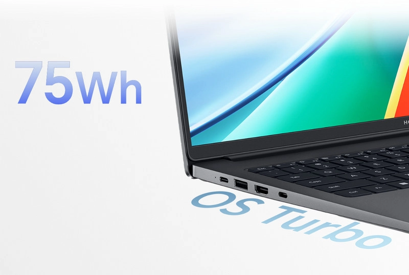 Аккумулятор 75 Вт·ч в сочетании с алгоритмами HONOR OS Turbo обеспечивает до 16 часов воспроизведения Full HD-видео и примерно 12 часов офисной нагрузки. Это позволяет комфортно использовать ноутбук целый день вдали от розетки — на учебе, в путешествии или в офисе.