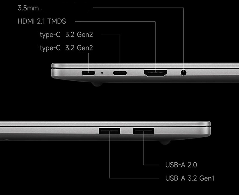 Несмотря на небольшой размер ноутбука, он получил все необходимые разъемы: два Type-C 3.2 Gen 2, HDMI 2.1, mini jack 3,5 мм, USB-A 2.0 и USB-A 3.2 Gen 1.
