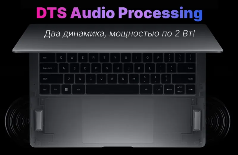 Два динамика суммарной мощностью 4 Вт и поддержка технологии DTS Audio для громкого объемного звучания.